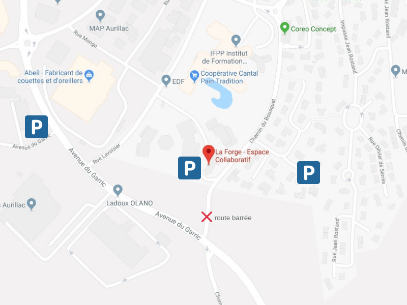 L’atelier de l’association La Forge est installé dans un ancien local de RTE, au 17 bis Chemin du Bousquet, au Garric. Attention, l’accès direct depuis l’avenue du Garric (en face Olano) est désormais fermé, il faut faire le tour et passer devant la salle de sport « Coreo Concept ».