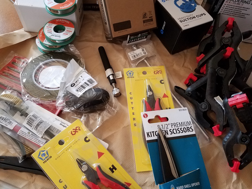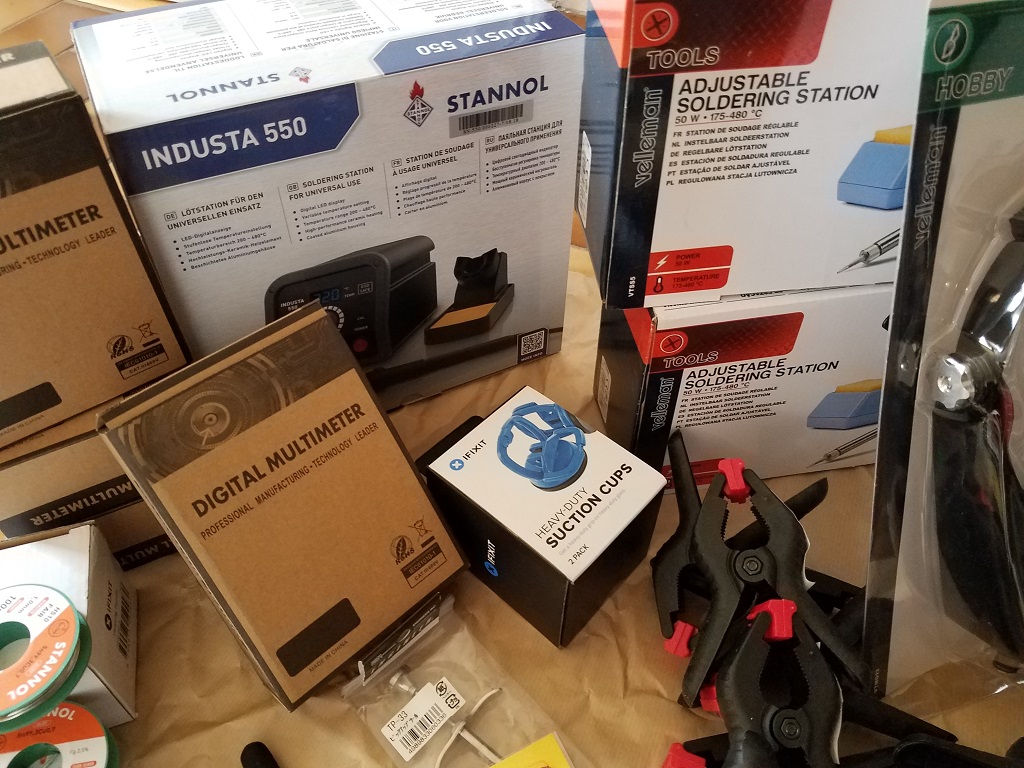 Nous venons de recevoir cette commande au siège, que nous avons déballé avec une joyeuse hâte. Ainsi, lors des prochains Repair Cafés, vous pourrez utiliser ces tous nouveaux outils :