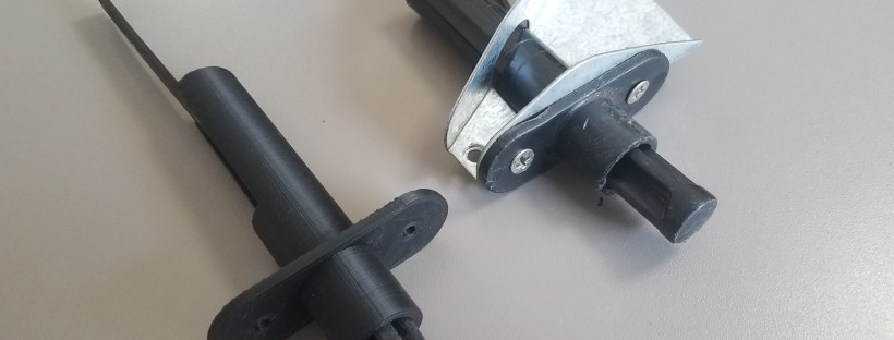 Josiane est venue nous voir avec un souci tout bête : le loquet à ressort qui maintient sa table de ping-pong en position s’était cassé.Résultat, impossible de garder la table bien droite pendant une partie, ou de la replier pour la ranger ! Heureusement, la même pièce était encore intacte de l’autre côté de la … Lire la suite Un loquet imprimé en 3D pour sauver une table de ping-pong